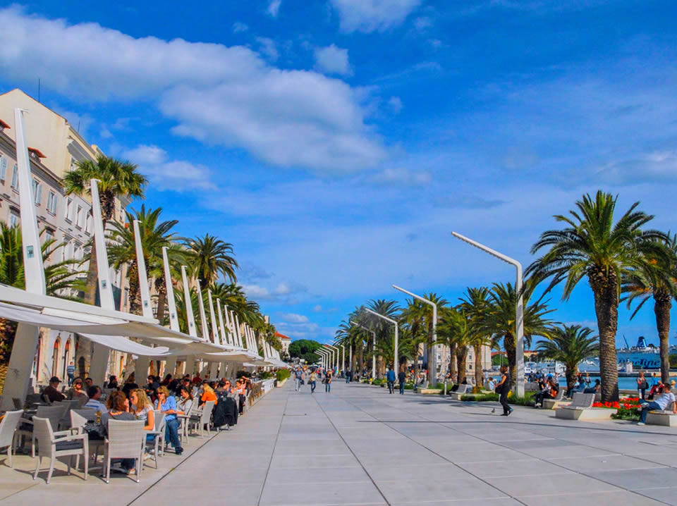 The town is under UNESCO protection and it is also a part of the World Cultural Heritage register. Split is located in the center of the Adriatic coast. Split has numerous cultural and historical attractions. Night life takes place in many restaurants, clubs and discotheques. The famous city walk called ''Riva'' is a seaboard that goes along the south walls of Diocletian's Palace. It is a favorite gathering place for citizens and visitors to the city. Split is the second largest city in Croatia and an important port for tourist transfer toward the Croatian islands and Italy.