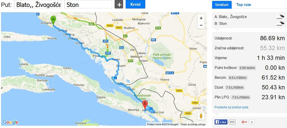 Ston is around 85 kilometers away from Zivogosce Blato (directions and map are attached below the text).